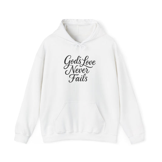 God’s Love Never Fails Hoodie — Inspirational Christian Faith Sweatshirt